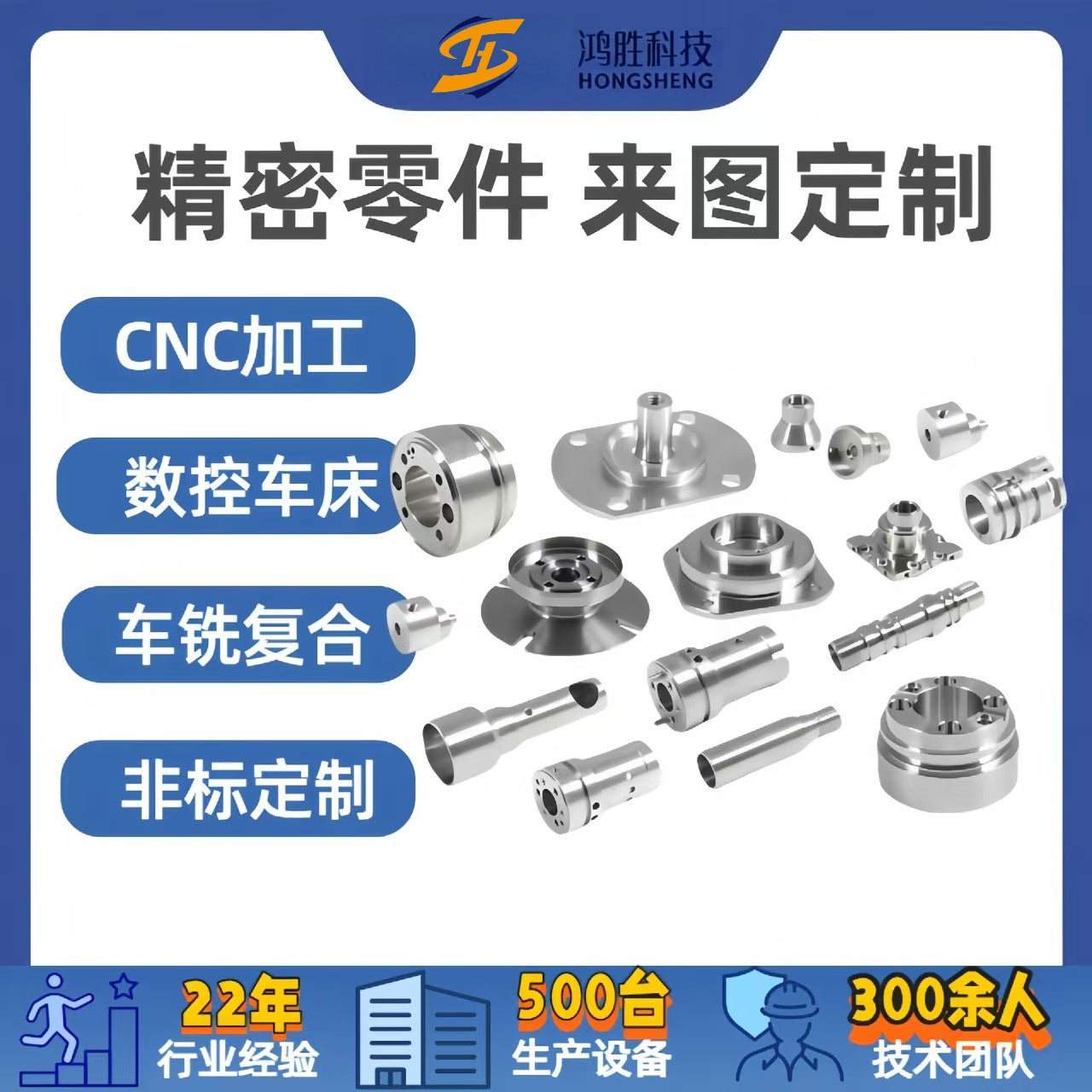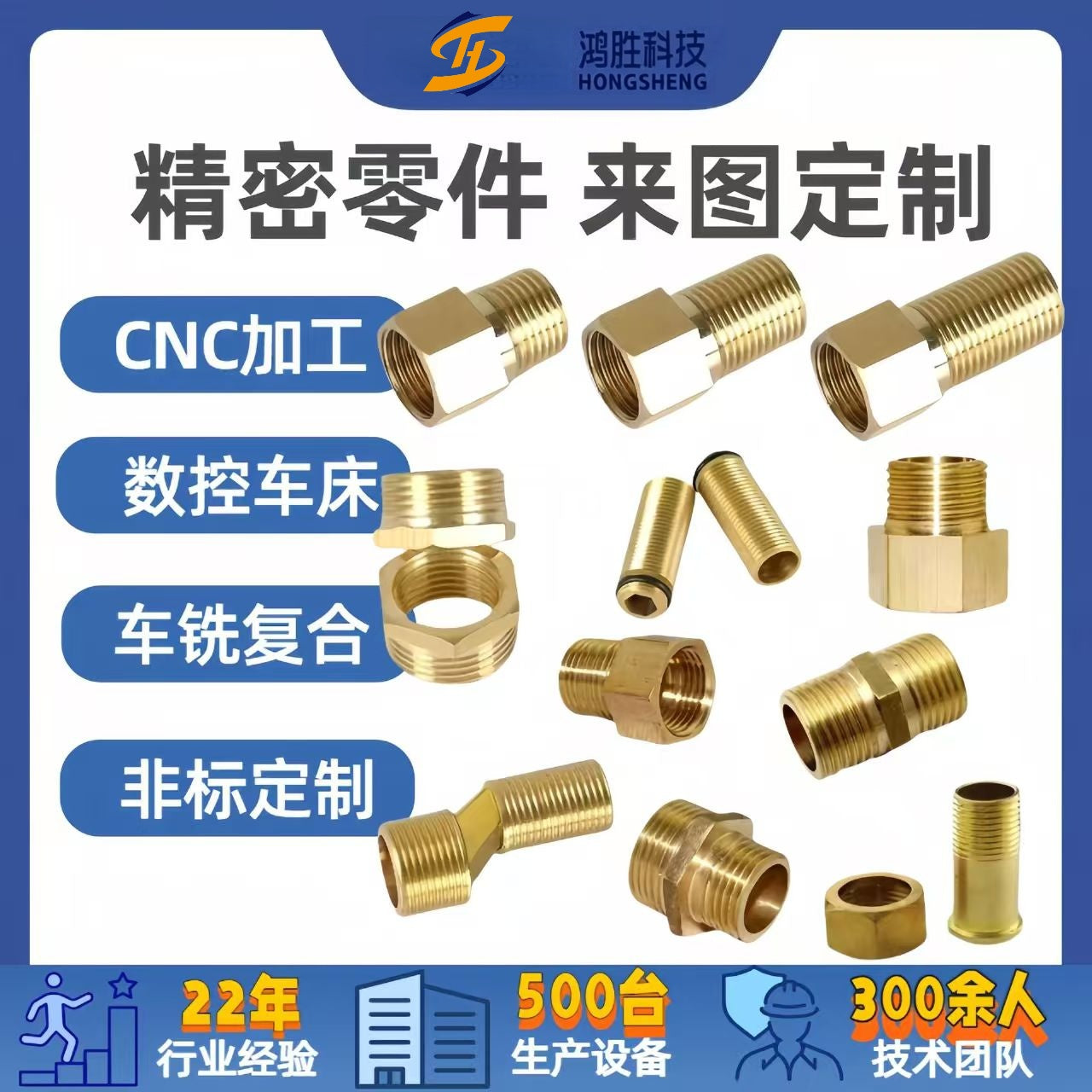 佛山市鸿胜科技有限公司是集研发、生产、销售于一体的cnc加工厂家,我们深耕压铸、CNC精密五金行业22年,同时也是一家专业生产特种工程塑料的高新科技企业,广东省的专精特新企业。佛山市鸿胜科技有限公司成立于2002年,总部坐落于广东省佛山市南海区桂城街道紫荆城工业园,占地面积一万多18600平方米,现有员工300余人,其中专业管理及技术人员150余人。生产设备包括日本BrotherCNC加工中心,专业用于生产注塑模具的哈斯加工中心。发那科CNC加工中心500台,日本津上数控车床20台,马扎克5轴联动CNC加工中心2台,线切割机,立式锣床等。专业用于生产各种特种塑料配件的日本住友注塑设备50台。品质检测设备包括三次元检测仪2台,2.5次元检测仪2台,三丰高度检测仪,三丰工业显微镜显微镜等检测仪器一批。加工精度达到0.01mm。