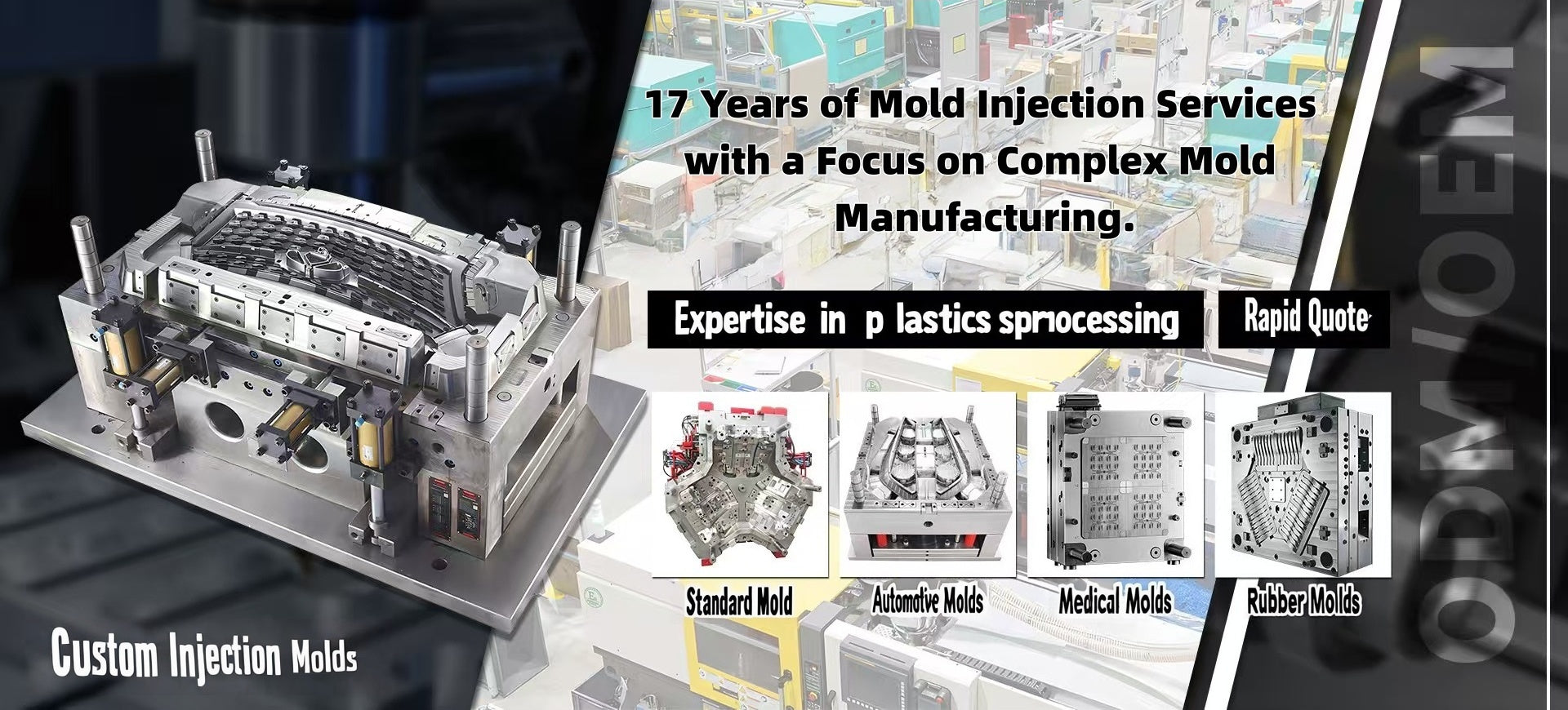 - 50 Japanese Sumitomo injection molding equipment units dedicated to producing various special plastic components.
